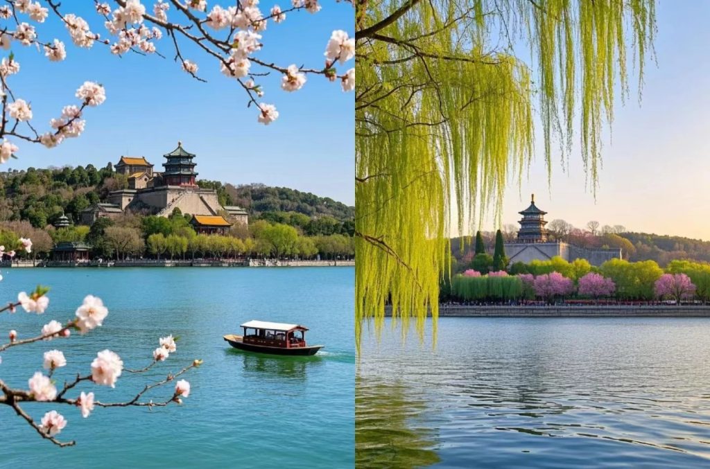 This historic imperial garden combines lakes and hills, with the White Pagoda standing gracefully on Qiong Island. Willow trees bend over the calm waters, and ducks swim leisurely.