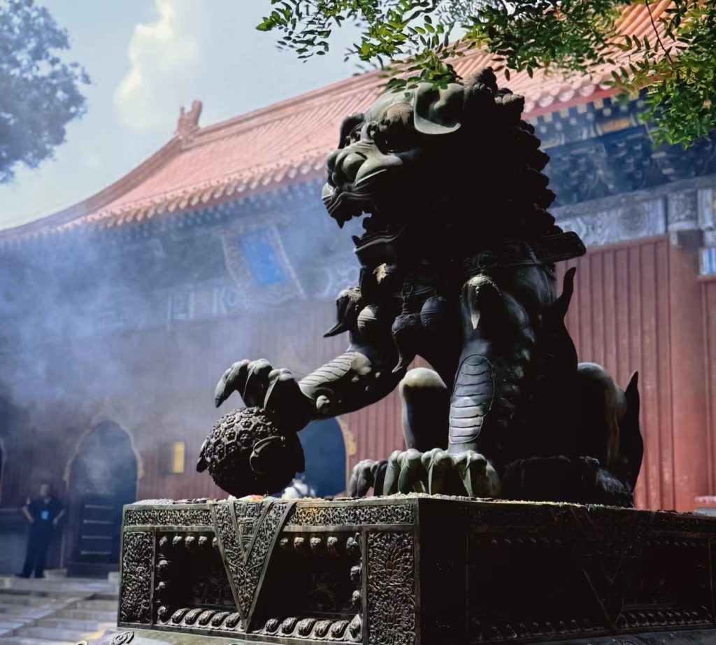 The largest Tibetan Buddhist temple in Beijing, the Lama Temple is tranquil and filled with incense smoke. Red walls and golden rooftops gleam in the sunlight, while wooden halls emit a subtle scent of sandalwood.